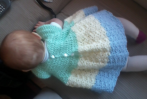 This is my first EVER piece of clothing I have crocheted - a 3-6 month size Snap Dragon Infant Dress (pattern by Kate Wagstaff) for BabyDragon (which obviously has not fit now for ~2 months. (Ya she's 9 months! Time flies!) I used scrap yarn that was leftover from doing my friend's sea project.